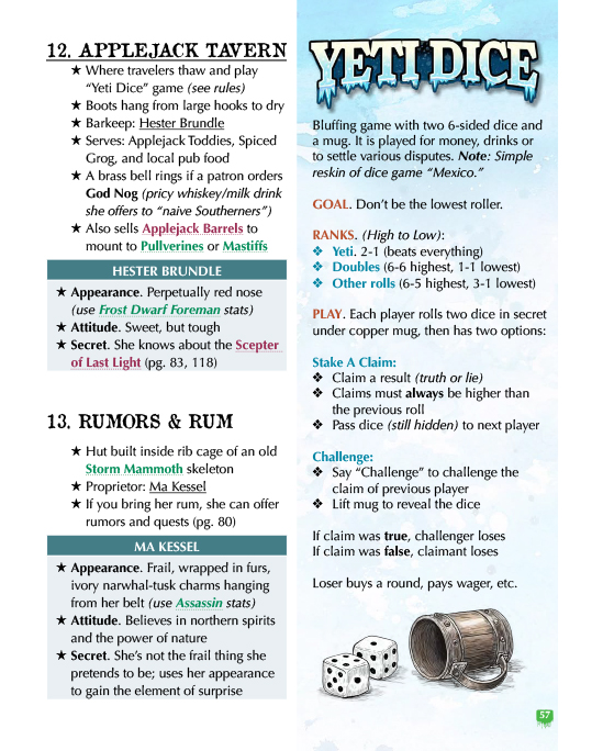 - Applejack Tavern and games of Yeti Dice