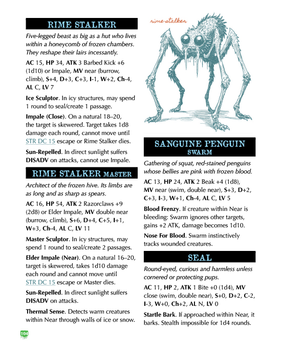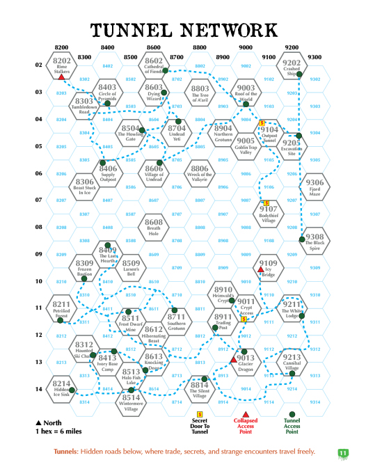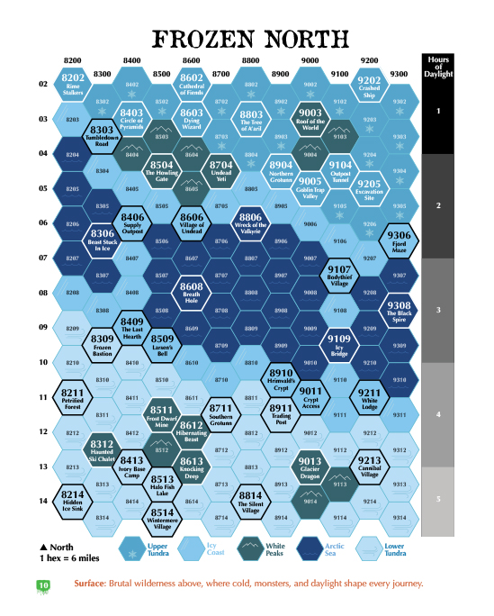 Brave the endless white in Shards of the Frozen North—a Shadowdark-compatible arctic sandbox featuring Wintermere, overland and tunnel hex maps, deadly adventures, frozen treasures, and the terrifying Bodythief. The various locations and two different hex maps can accommodate play for all levels.