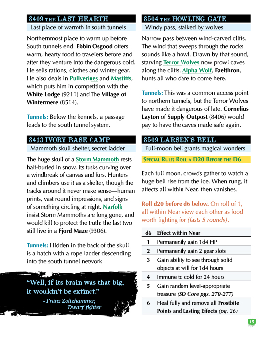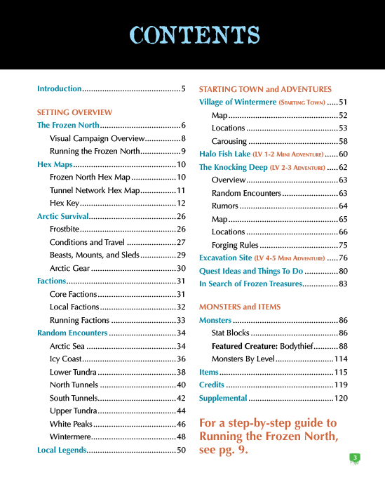 Three adventures send crawlers from the relative safety of Wintermere into the Frozen North’s deadliest mysteries: a rescue on treacherous ice, an abandoned mine echoing with unnatural knocking, and a paranoia-filled dig site where no survivor can be trusted.