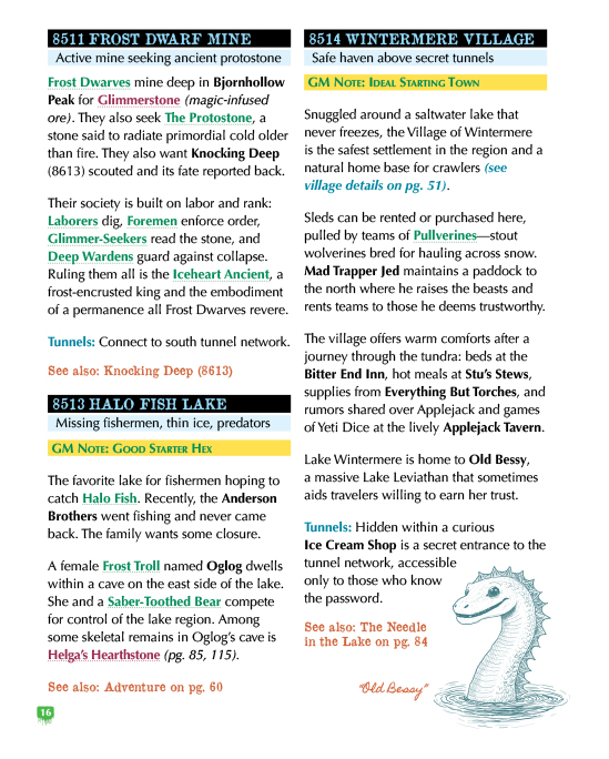 - Monsters and items tied directly to the setting’s adventures and hexes